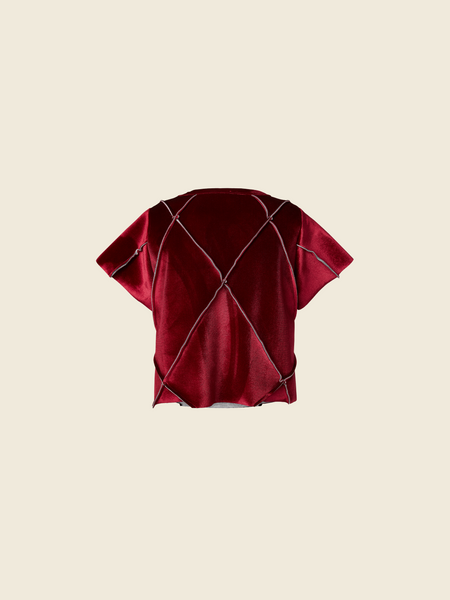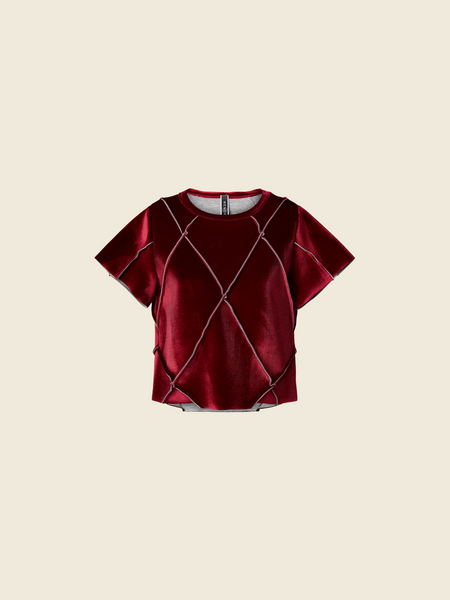 VELVET T-SHIRT WITH RHOMBUS SEAMS