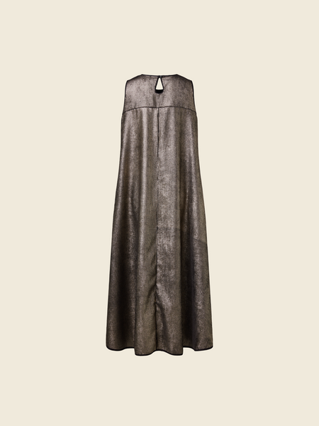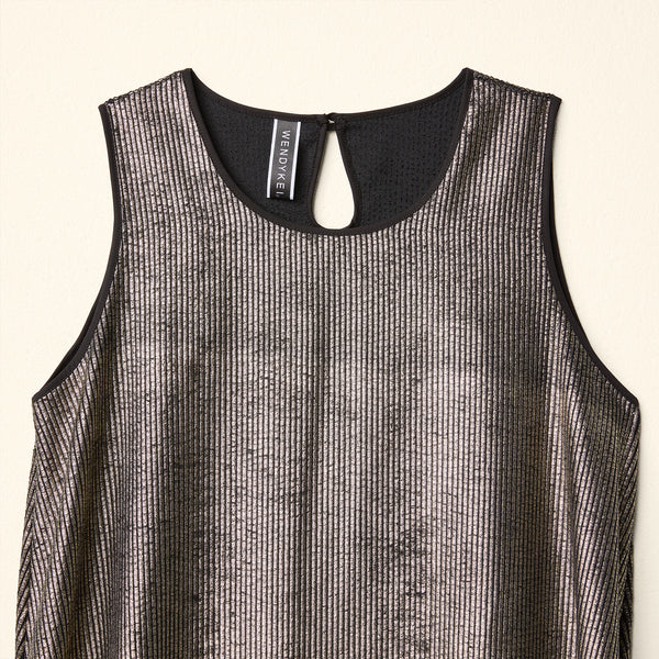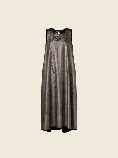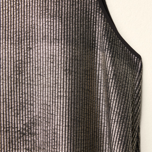 Sleeveless dress in gold velvet ribbed fabric