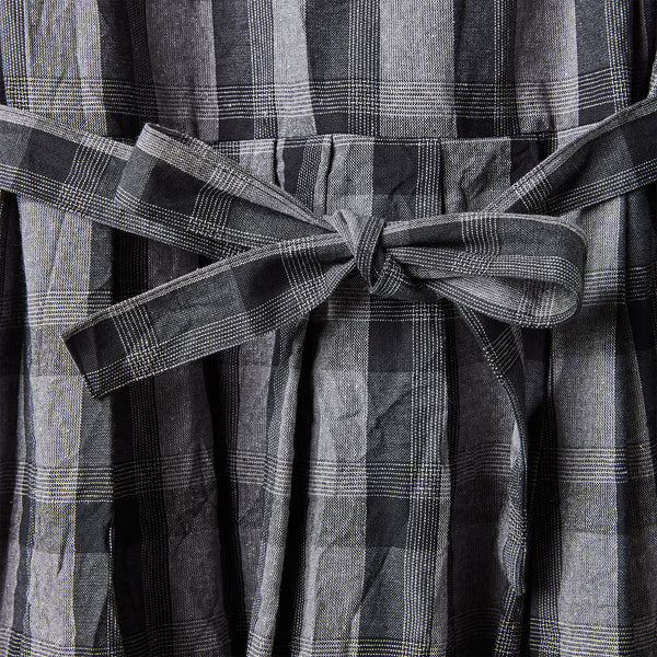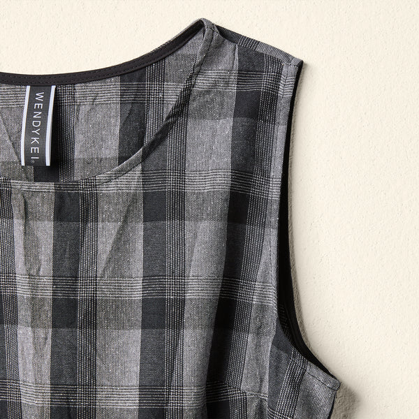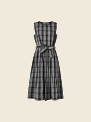 SLEEVELESS DRESS IN GRAY TARTAN FABRIC WITH BELT