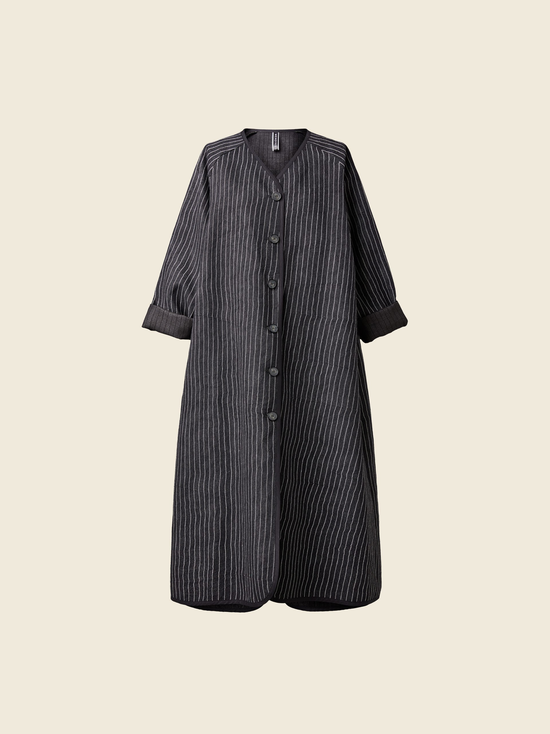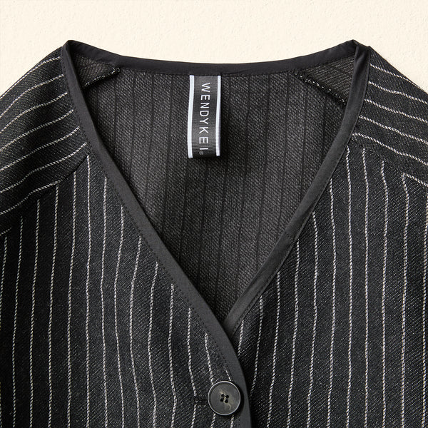 V 领条纹大衣