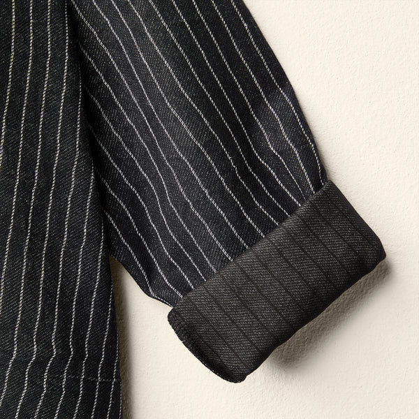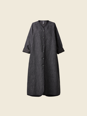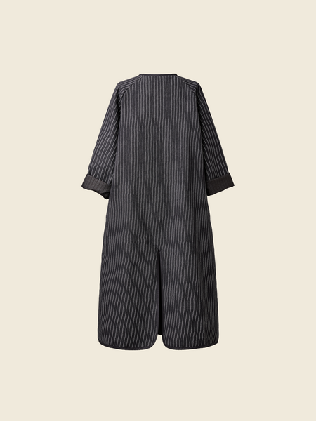 条纹棉混纺面料大衣