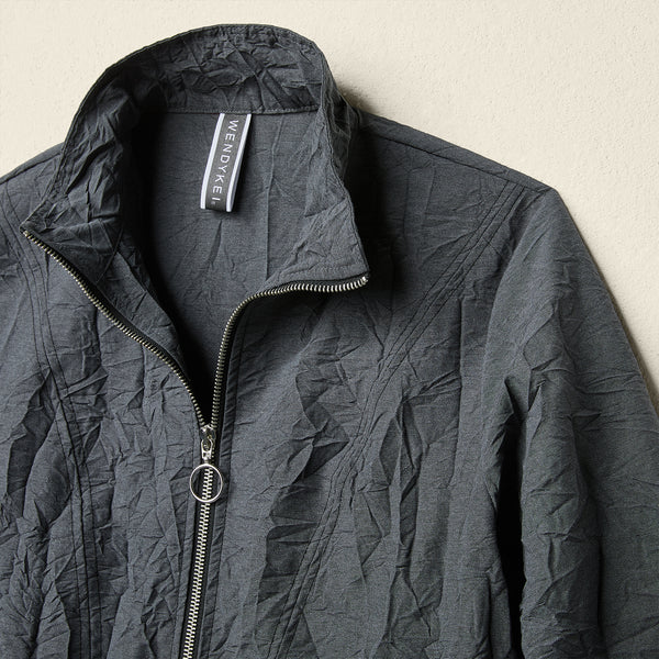 SCULPTURAL CRINKLED ZIP-UP MAXI DRESS